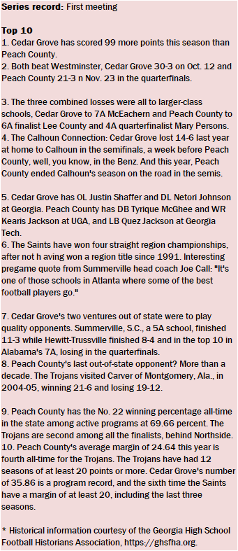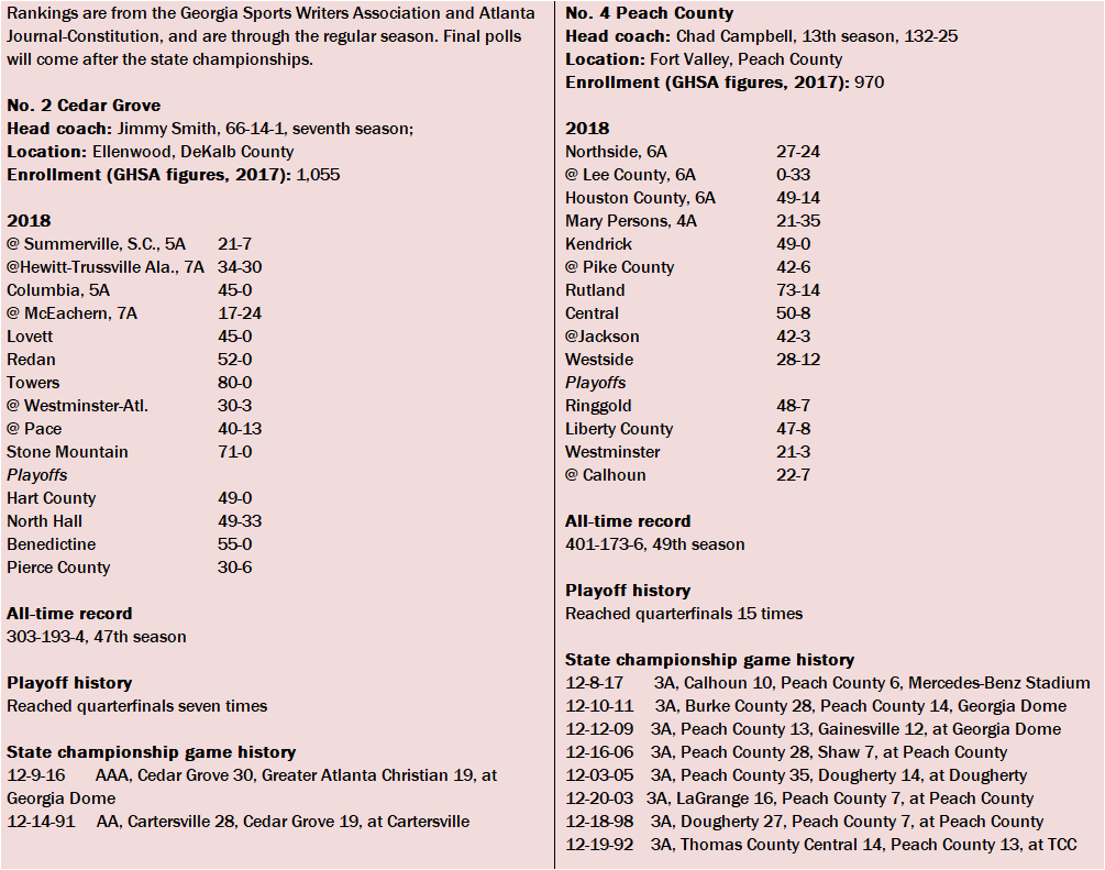 GHSA Class 3A championship: Peach County vs. Cedar Grove: preview, results, history, top 10, notes