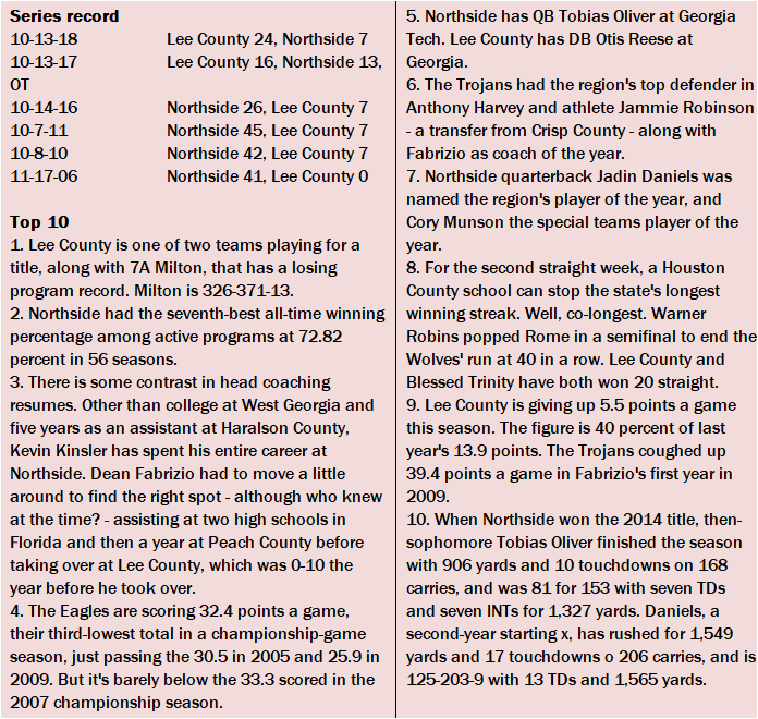 Class 6A championship: Northside vs. Lee County - preview, results, history, top 10, notes
