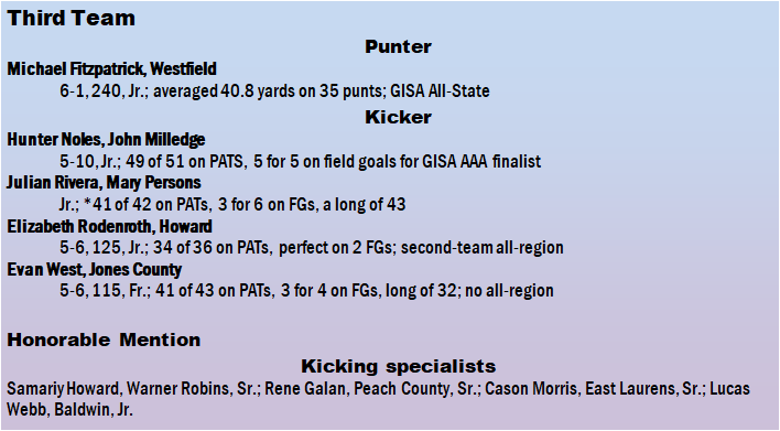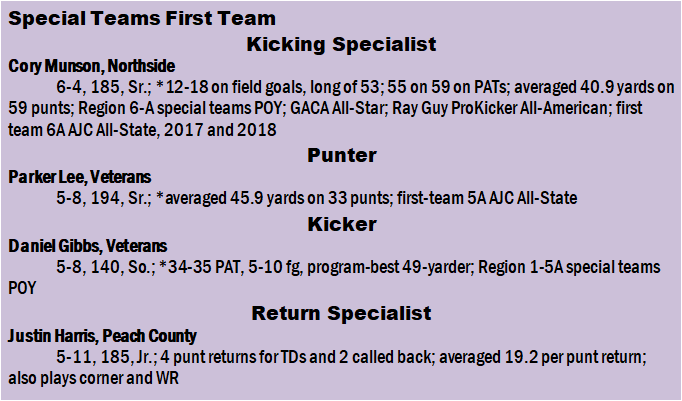 Central Georgia Sports ReportJanuary 25, 2019All-Central Georgia, footballComment All-Central Georgia Specialists, 2018 Central Georgia Sports ReportJanuary 25, 2019All-Central Georgia, footballComment Your All-Central Georgia primerCentral Georgia all-region teams By Michael A. LoughThe Sports Reportcentralgasports@gmail.com Central Georgia Sports Report Facebook0 Twitter 0 Likes