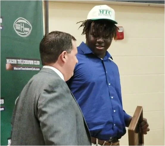 Bleckley County head coach Von Lassiter and standout lineman Amarius Mims.
