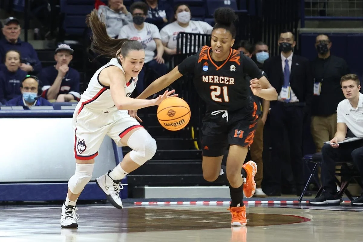 It was the third time a team has been held scoreless in a quarter in a women’s tournament game, Mercer joining Texas (vs. South Carolina, 2021) and Montana State (vs. Stanford, Friday night). The Bears went 0 for 12 from the floor and didn’t get to the line in the quarter. The Huskies were only 8 of 21 in the third.