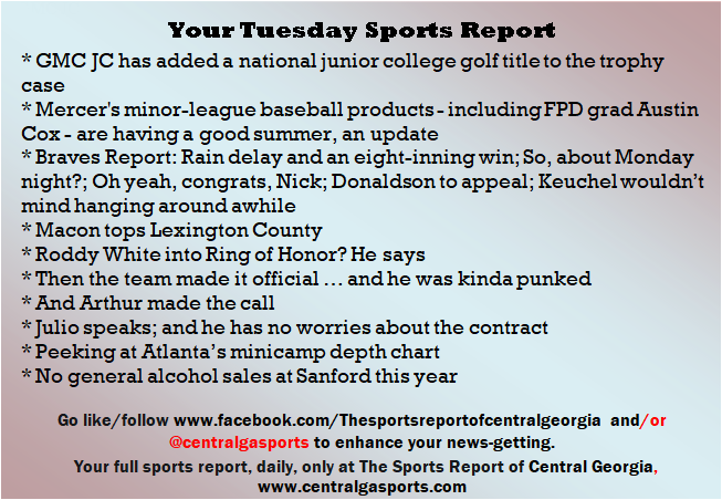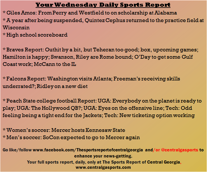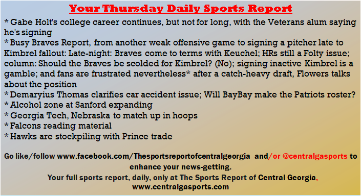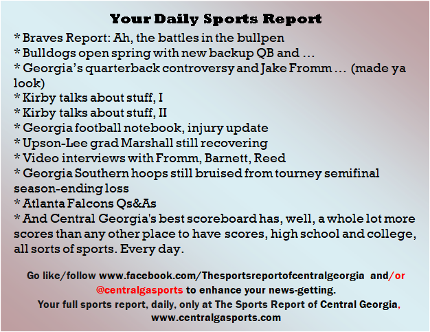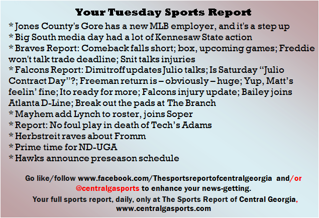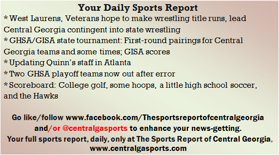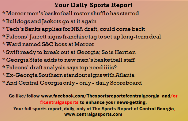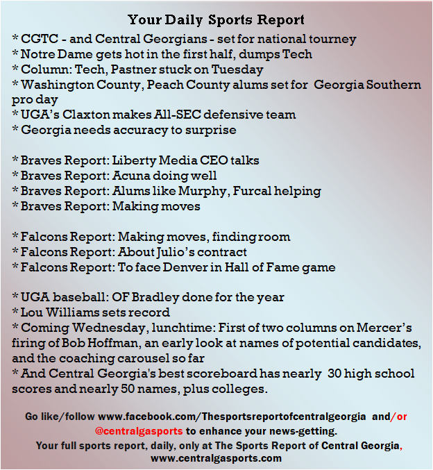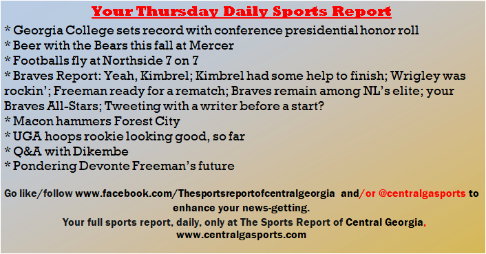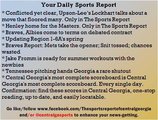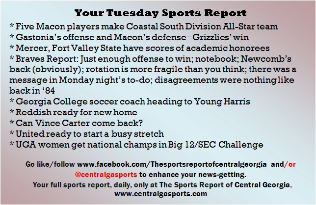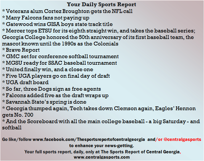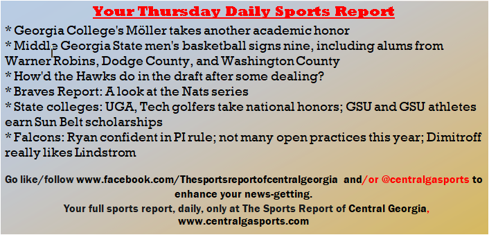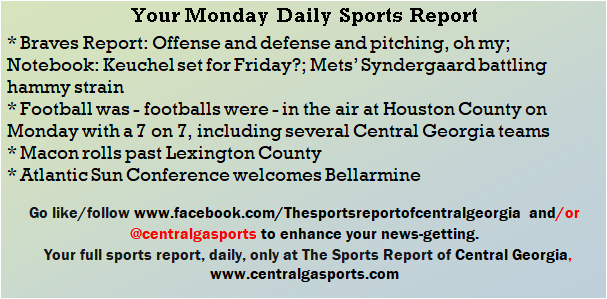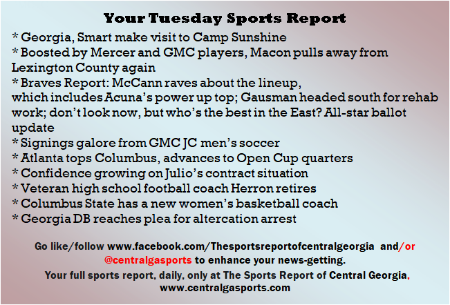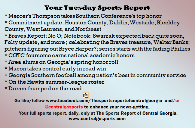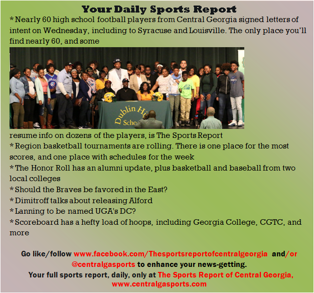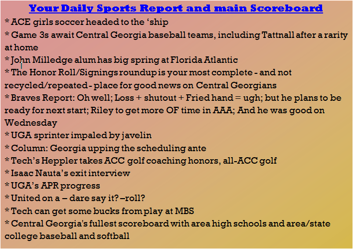 Each morning, go to The Latest Coverage, and check it out mid-afternoon and in the evening. And to keep up with what's going on and what's coming to The Sports Report, follow @centralgasports and https://www.facebook.com/Thesportsreportofcentralgeorgia, where you'll find more relevant and notable postings and updates, in Central Georgia and beyond.