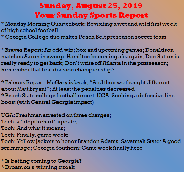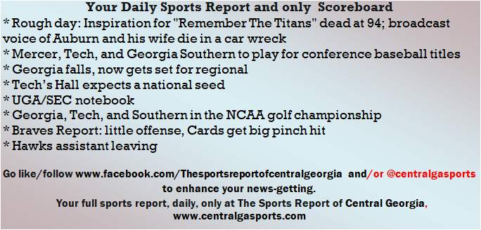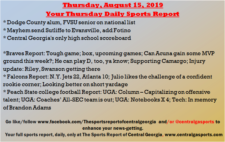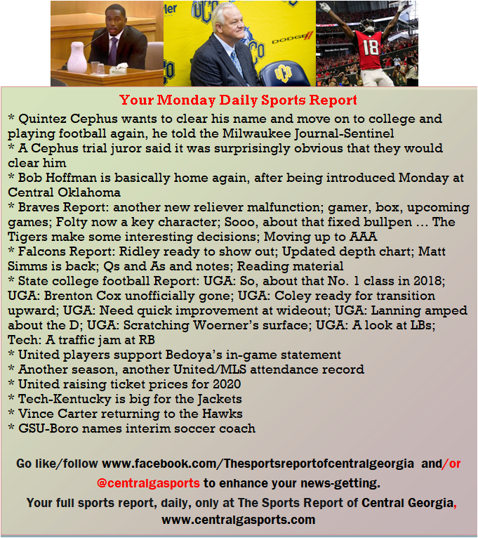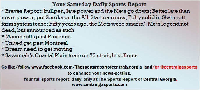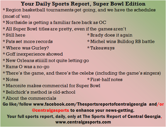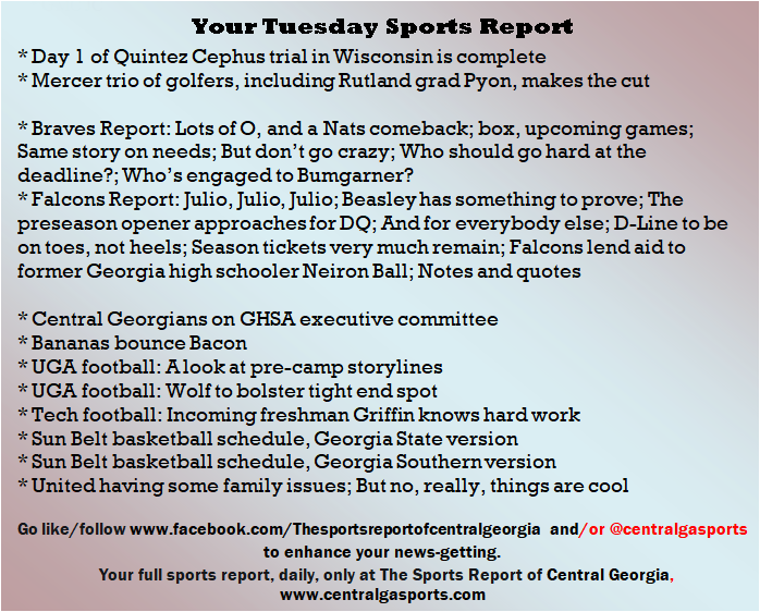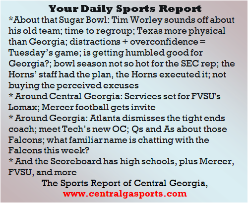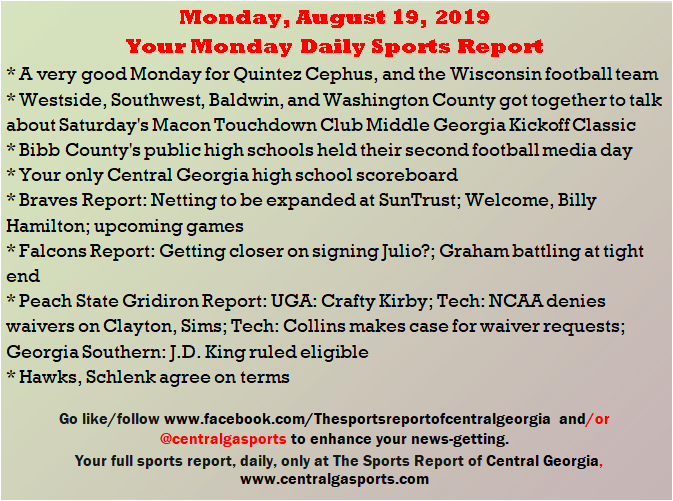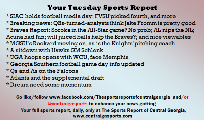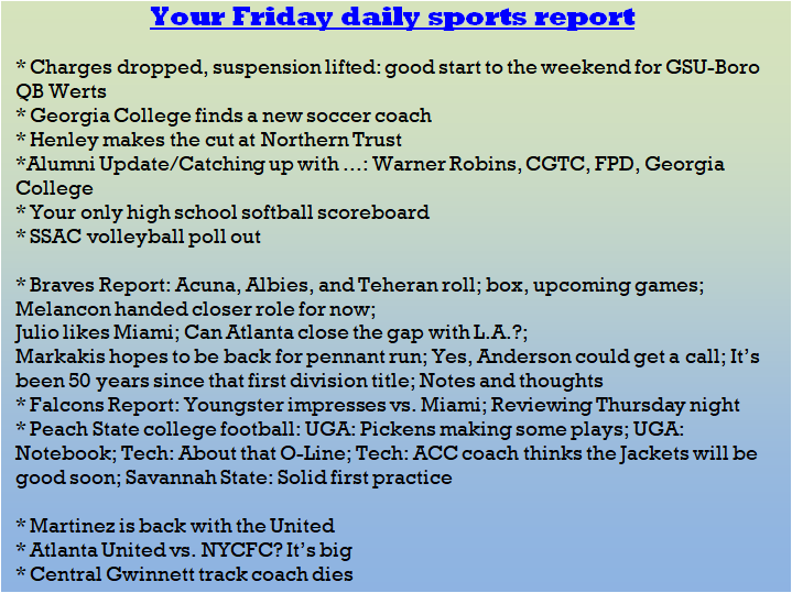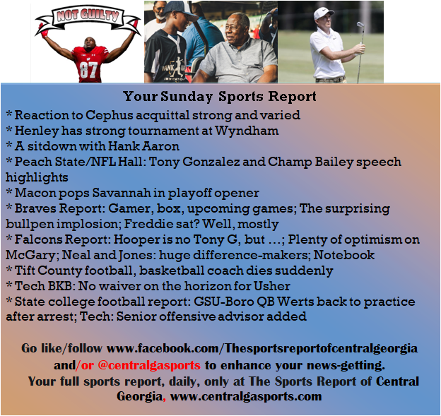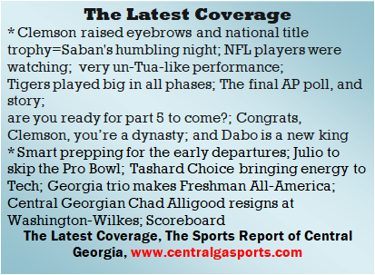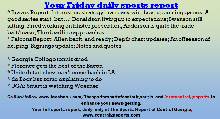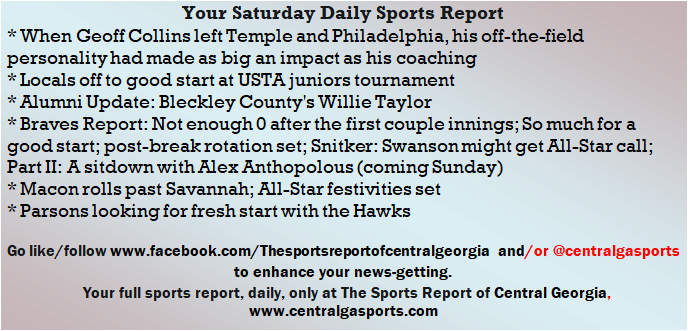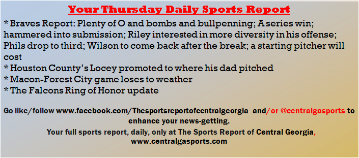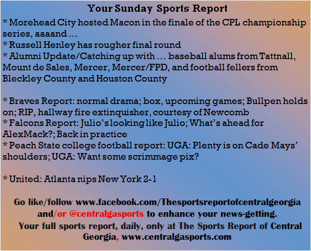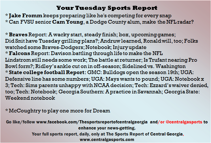 Each morning, go to The Latest Coverage, and check it out mid-afternoon and in the evening. And to keep up with what's going on and what's coming to The Sports Report, follow @centralgasports and https://www.facebook.com/Thesportsreportofcentralgeorgia, where you'll find more relevant and notable postings and updates, in Central Georgia and beyond.