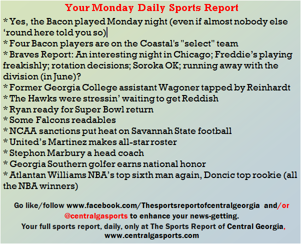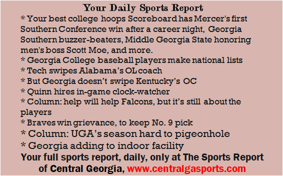 A slew of Falcons (so goofy), a chunk of Central Ga. readables, like Mercer and Georgia College basketball, and more.